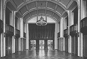 ![]() Die Vortragshalle als Prunksaal im Jahre 1920, kurz nach der Fertigstellung. welche heute noch im Original vorhanden sind. |