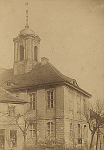Bergstraße. Offensichtlich befindet sich das Haus auf dem höchsten Punkt der Stadt. In unmittelbarer Nähe befand sich das alte Nauener Rathaus. |