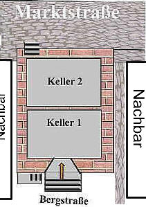 offensichtlich der Kellereingang außerhalb des Gebäudes. Manche Quellen