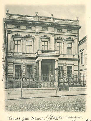 Außenstelle des Landkreises Havelland. (Polizeiliches Kennzeichen an Kraftfahrzeugen: HVL). LINKS: Blick auf das instandgesetzte Gebäude im Jahr 2002 (Inbetriebnahme war im Jahre 1925). RECHT: Das ursprüngliche Landratsamt, welches in das Bauwerk von 1925 integriert wurde.. |