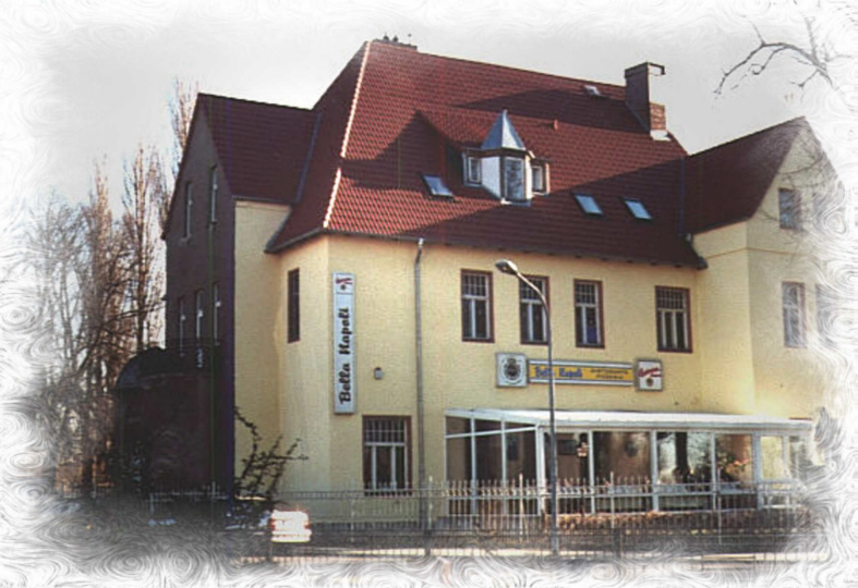 Anlaufpunkt für Brummi-Fahrer, die ihren Hunger stillen wollten. Seitdem stand das Haus jahrelang leer und der Zahn der Zeit hinterlies nun seine Spuren. Bis zu dem Tage, als Herr Al-Gaddoa mit seiner Familie Anfang der 2000er Jahre hier einzog und das Grundstück wieder mit Leben erfüllte. Später baute er die Doppelgarage zu einem kleinen Imbiss um und setzte damit die Tradition von 1806 weiter fort. Denn seit diesem Jahr stand an dieser Stelle eine Gastwirtschaft. Bereits in den 1920ern war sie DER Treffpunkt. Im Biergarten wurde zum Frühschoppen geblasen und auf der befestigten und beleuchteten Tanzfläche konnte man sich vergnügen. Die links vom Eingang befindliche Terrasse bot einen guten Einblick zur belebten Straße. Die Gaststätte selbst verfügte im Obergeschoss neben der Wirtswohnung noch über zwei Fremdenzimmer und im Erdgeschoss auf der Südseite über einen kleinen Festsaal. |