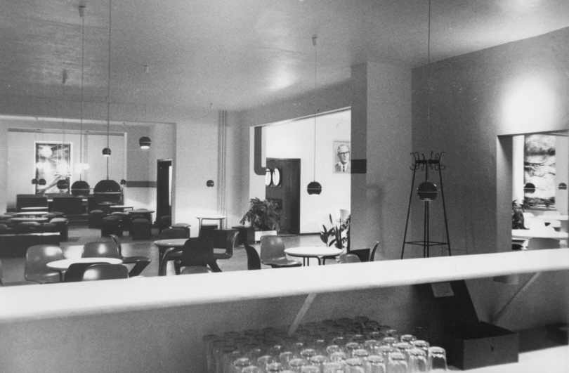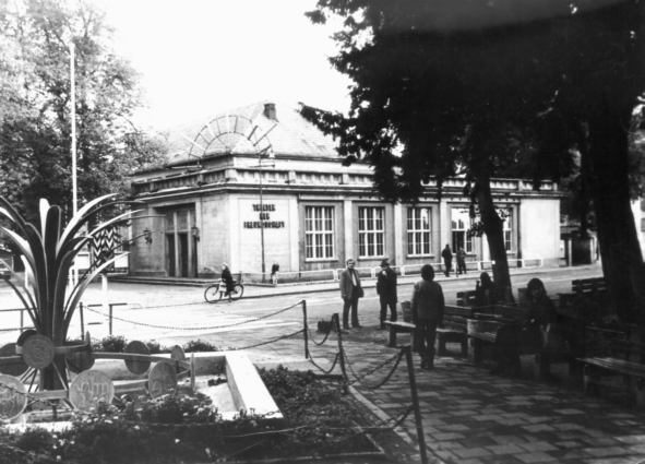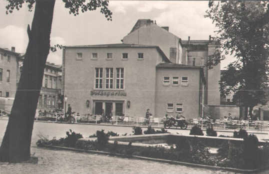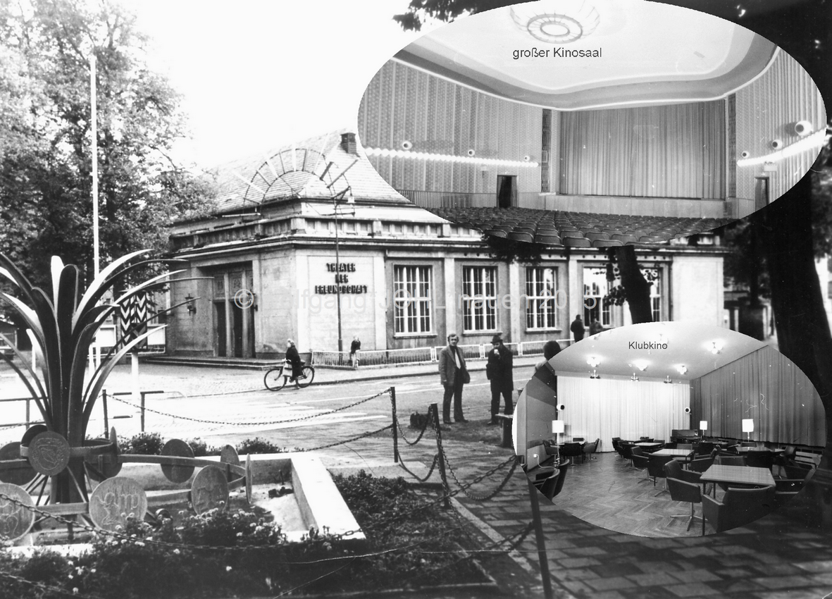 1994 in der Vorderansicht. Die Fassade wurde zwar renoviert, aber auf Stilechtheit hatte man hier kaum geachtet. Unter den drei Fenstern der Mittelachse kann man eine größere Freifläche erkennen. Hier war ursprünglich ein Balkon angebracht. Mit dem Balkon entfernte man auch alle alten Fenster und ersetzte sie durch solche aus der DDR-Serienproduktion. LINKS: So sah bei der Eröffnug des Jugendklubs 1979 ein Klubraum aus. |