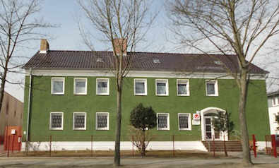 das Finanzamt befinden. RECHTS: Das Geschäfts- und Wohnhaus der Familie wurde 1976 zum Jugendklubhaus "Werner Seelenbinder". Die Bibliothek zog dann Ende der 1990er Jahre hier ebenfalls ein. Ab 2015 ist hier das Familienzentrum untergebracht. Das Haus von der Rückseite gesehen. Bei den vielen Um- und Ausbauten hat man offensichtlich alle Schmuckelemente "verschwinden" lassen. |