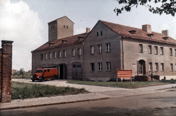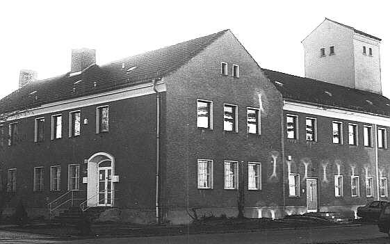 begegnet uns die ehemalige Feuerwehrschule des DDR-Bezirkes Potsdam. LINKS: Die ehemalige Feuerwehrschule beherbergte in den 1990er Jahren und bis zum Neubau an der St.-Georgen-Straße 7 den Wasser- und Abwasserverband Havelland (WAH). Später wurde das Grundstück an private Eigentümer verkauft und beherbergt zurzeit eine Tierarztpraxis. (ganz rechts) |