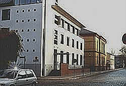 die Jahrhundertwende. Inhaftiert wurden hier nur Untersuchungshäftlinge. Die Verurteilten wurden nach Spandau verbracht. Die Stadt Spandau gehörte bis zur Eingemeindung nach Groß-Berlin im Jahre 1920 zum Landkreis Osthavelland. Das helle Gebäude rechts daneben beherbergte viele Jahrzehnte Verwaltungs- und staatsanwaltliche Behörden. RECHTS: 1999 errichtete man links vom Hauptgebäude einen modernen Verwaltungsanbau, welcher von der Architektur her nicht erwähnenswert ist. |
