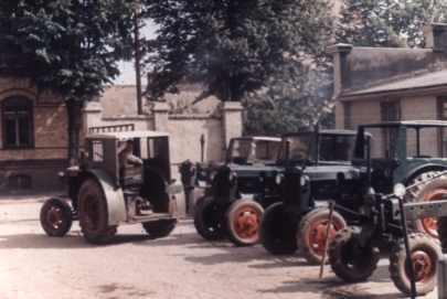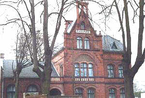 bis 1945 von der Stadt betrieben ... Als Club der Volkssolidarität bis 1990 benutzt ...und als Begegnungsstätte der AWO (Arbeiterwohlfahrt) gegenwärtig genutzt ... Der AWO-Ortsverein unterhält hier einen Seniorenclub, von dem vielfältige Freizeitangebote ausgehen. Der Treff ist zu einem beliebten Ausgangspunkt für Wanderungen und sportlichen Aktivitäten (z.B. Radwanderungen usw.), sowie Tagesausflügen geworden. Im weißen Feld des Giebels steht auch heute noch gut lesbar ''Kinderheim''. RECHTS: Gegenüber dem Amtsgericht befand sich zur DDR-Zeit eine Traktorenwerkstatt. Heute ist das Grundstück mit einem Wohn-/Geschäftshaus mit Gaststätte und einer Produktionshalle eines Fensterherstellers bebaut. |