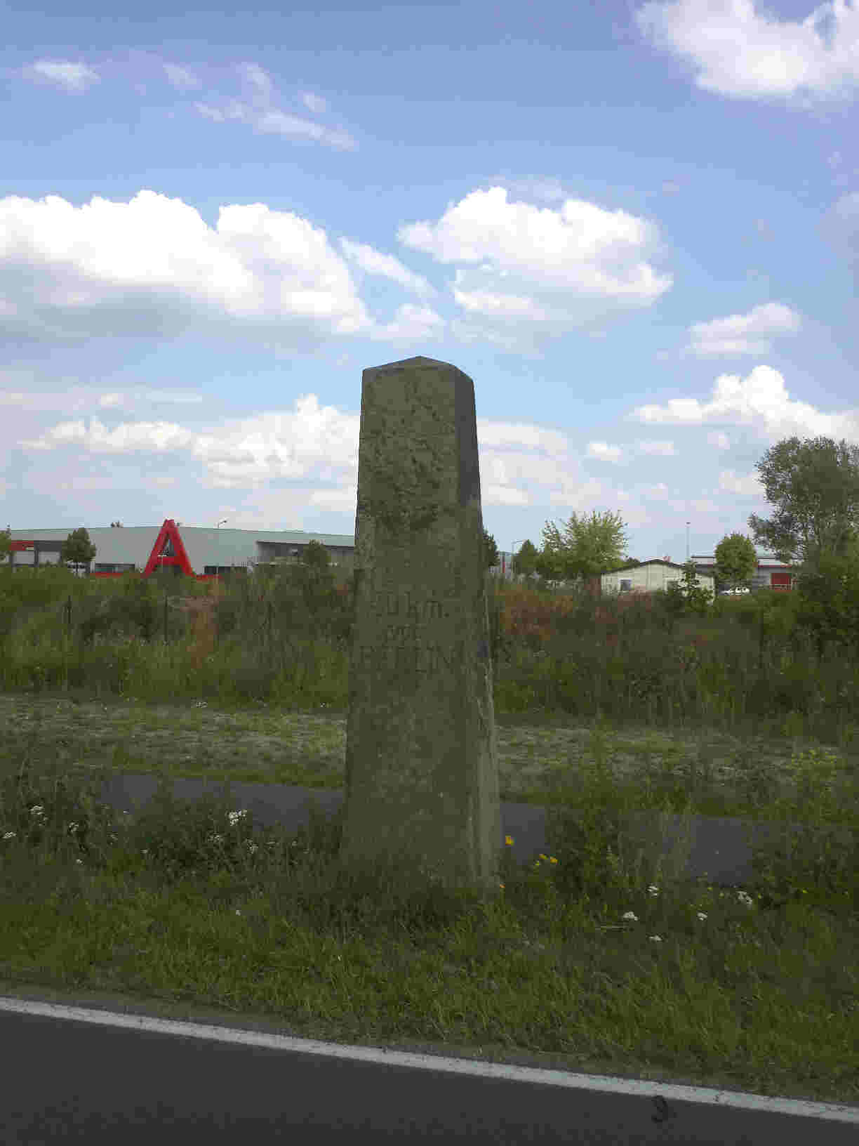 dieser Stein mit der Angabe, wieviele Kilometer es von Berlin nach