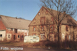 Von dem einst mächtigen Vorwerk sind das die kümmerlichen Reste im Jahre 2001. Es stehen noch drei weitere Gebäude. Eines davon wird von einem Landwirtschaftsunternehmen (Nachfolger der LPG.) als Traktorenhalle genutzt. Ein weiteres ist offensichtlich teilbewohnt und in dem dritten war zu DDR-Zeiten einmal ein Kindergarten (Kita) untergebracht. |