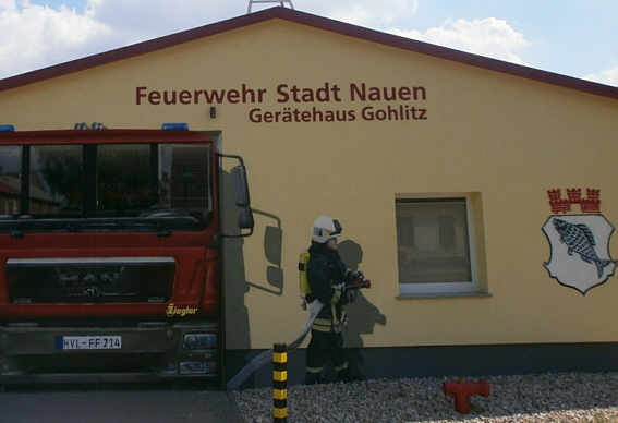 Kreisstadt Rathenow teilt. RECHTS: Das hervorragend instandgesetzte Gerätehaus der Freiwilligen Feuerwehreinheit in Gohlitz. (Quelle: opencaching.de) Gohlitz wurde 1950 nach Wachow eingemeindet, während die Eingemeindung von Niebede nach Wachow erst 1962 erfolgte. |